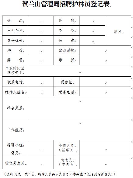 本次招聘8名护林员,其中森林消防大队4人、马莲口管理站1人、苏峪口管理站1人、大水沟管理站1人、红果子管理站1人,主要从事贺兰山自然保护区森林草原防灭火和资源管护工作。