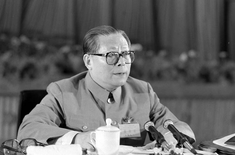 1985年,江泽民同志在上海市八届人大四次会议上。