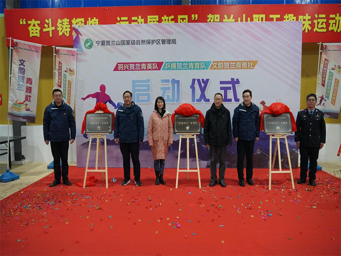2月13日,贺兰山“乒搏贺兰”青育队、“羽兴贺兰”青英队、“文韵贺兰”青雅社启动仪式在贺兰山管理局举行。自治区林业和草原局二级巡视员郭宏玲,党组成员、局长助理秦晓光,自治区公安厅森林公安局副局长刘军,贺兰山管理局领导班子成员、副科级以上干部和机关全体干部职工参加启动仪式。