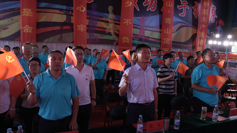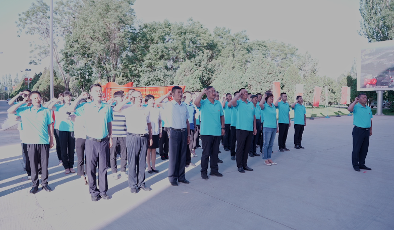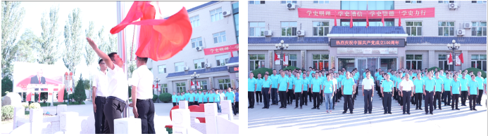 重温入党誓词,重忆入党初心。7月1日7:40,60多名党员整齐列队,在党委书记郭栋同志的带领下重温入党誓词。“我志愿加入中国共产党,拥护党的纲领,遵守党的章程……”全体党员面向鲜红的党旗和神圣的入党誓词,胸佩党徽,举起右手,紧握拳头,庄严宣誓。
