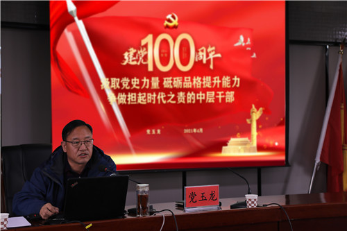 局党委副书记、局长党玉龙同志结合党史学习教育,针对管理局中层干部队伍中存在规矩意识、能力素质、工作方法与岗位需要不适应等问题,以“汲取党史力量,砥砺品格提升能力,争做担起时代之责的中层干部”为主题,从学党史增信明理、汲取“三种”力量,守初心崇德立身、砥砺“四种”品格,担使命力行实践、提升“五种”能力三个方面对中层干部职工提出了具体要求。