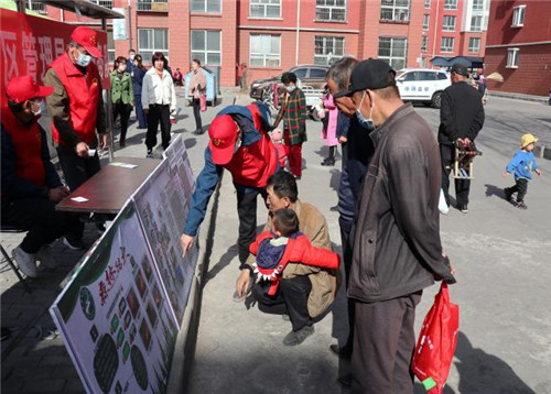 崇岗社区广场上播放着歌曲《学习雷锋好榜样》,社区党工委牵头组织了辖区共建单位大水沟管理站、汝箕沟管理站、石嘴山管理站、地方派出所、交警队、市场监督管理所、卫生所、崇岗小学等单位,广泛宣传《森林法》《野生动物保护法》《森林防火条例》、林政资源管护等相关法律法规,宣传疫情防控知识,开展禁毒、扫黑除恶、反邪教等法制知识宣传,向社区群众发放宣传材料260多份,同时开展为社区群众免费测量血压血糖、理发,为孤寡老人清理家庭卫生,清扫街道垃圾等志愿服务。