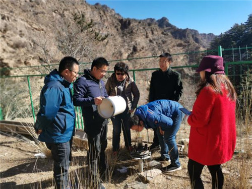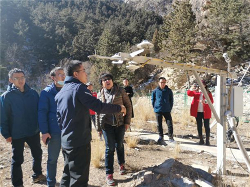 专家组一行实地调研了位于贺兰山中段苏峪口沟和响水沟流域不同植被类型径流场、测流堰、水量平衡场、标准气象场、通量塔和标准样地等的建设情况,重点对地表径流观测场、测流堰、标准气象场和通量塔等设施建设和设备布局进行了指导。