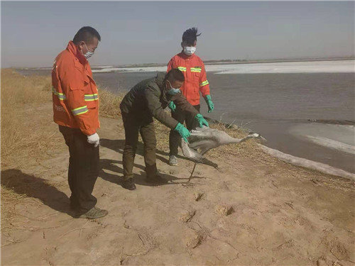 经过工作人员几天的治疗与饲养,灰鹤伤势好转,管理站安排工作人员,于2月13日,在黄河边的湿地湖泊边将其放生,回归自然的灰鹤欢快的在水面上来回游动。