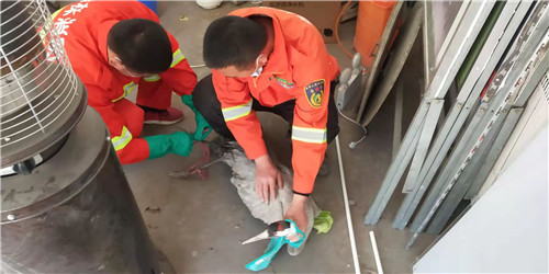 2月11日大年三十,贺兰山管理局红果子管理站收到红果子镇派出所送来一只受伤的野生动物,希望予以救助。管理站立即向科研科汇报,经初步鉴定为灰鹤,属国家二级野生保护动物。经仔细检查,灰鹤右翅伤口明显,再无其他伤口,暂时失去飞行能力,按照野生动物救治规范要求,工作人员购买了消炎药对灰鹤伤口进行了包扎处理,并安放在温度适宜的室内,随后根据灰鹤习性准备了一些食物和水,密切观察灰鹤的生命体征。