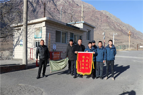 2月2日早晨,平罗县德渊水务有限公司党支部书记马锦波一行,带着新春的祝福和慰问品,在大水沟护林防火检查站,将一面“人民公仆 情系百姓”的锦旗送到李建平手中,感谢护林防火检查站护林员多年来对平罗县饮用水源地源头的保护。