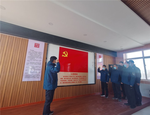 在党员活动中心,全体党员面对鲜红的党旗,高举右手重温入党誓词,回顾入党初心,继续做新时代的追梦人,宣誓结束后并在现场进行了党费缴纳。