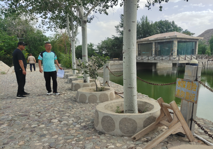 把紧“防范关”,全面排查整改隐患。组织排查重点区域设施、设备隐患风险并建立台账,明确整改目标和期限。对辖区水域及景点涉水项目安全隐患开展专项排查,在取水点、涉水娱乐设施、湖池、泄洪沟积水等涉水区域加设了13处警示标牌。修订完善防汛预案,加强防汛物资储备,确保在突发情况下能够迅速反应。