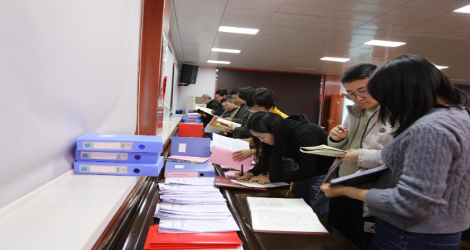 在互观互检阶段,各单位党组织负责人通过查阅党建资料,相互借鉴,查找不足;通过交流发言介绍党建工作亮点及经验,共同探讨做好党建工作的路径和方法。