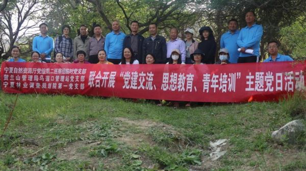 2022年5月19日,自然资源厅党组第二巡察组临时党支部、宁夏贺兰山管理局马莲口管理站党支部、宁夏林业调查规划院第一党支部联合开展“党建交流、思想教育、青年培训”主题党日活动,28名党员及青年参加。