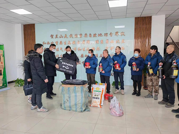 慰问组一行为基层干部职工送去了节日的问候和新春的祝福,将米、面、油以及棉服等慰问品送到干部职工手中,并详细询问工作生活情况,了解存在的困难和问题,预祝大家过一个欢乐祥和的春节,并通过他们向一直以来默默支持帮助贺兰山工作的家属致以诚挚的谢意和崇高的敬意。党玉龙同志强调,管理站负责人要厚植爱心和情怀,切实营造安心、放心、舒心的工作生活氛围,引导广大干部职工以山为家、以林为业,创造属于自己的辉煌。同时,嘱咐干部职工要保养好身体,做好自己健康的第一责任人,加强学习、加强自律,对自己负责、对家人负责、对社会负责,最大限度降低新冠病毒产生的影响。