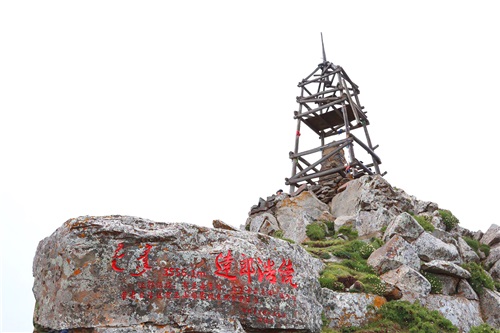 贺兰山主峰,敖包疙瘩,又称俄博疙瘩,海拔3556.1米,位于宁夏内蒙交界处的贺兰山脉中部。蒙语是达塄浩绕,意指70个石头垒成的圈子,行政区划在内蒙古阿拉善左旗境内,是宁夏和内蒙的界峰,它不仅阻隔了东侵的风沙,涵养了水源,保持了水土,这里丰富的森林植物资源,更是宁夏平原的生态之肺。特殊的地理位置和地理环境塑造了独特的生物类群,使这里成为我国八大生物多样性中心之一,也让这里成为了中国西北一个特有的动物隐秘王国。在山顶上,有一座木塔,这是1957年为纪念登顶成功而矗立的。明代诗人王道增在登上贺兰山主峰敖包疙瘩后,曾写了一首诗:“峭壁插空翠欲流,贺兰名胜跨神州。招寻羡尔饶佳句,牢落怜予阻壮游。万叠芙蓉足底现,八千世界望中收。平生煞有吞胡志,愿与勒铭最上头。”