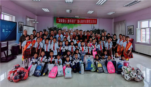 做为贺兰山人,关心帮助少年儿童我们责无旁贷,为增进与孩子互动,倾听孩子的心声,走进孩子,让孩子们更加深刻了解贺兰山,同时提高少年儿童森林防火意识,确保森林资源的安全。2019年5月23日下午14时苏峪口党支部联合宁旅集团党支部、贺兰山国家森林公园党支部专程赶赴西夏区镇北堡奕龙希望小学开展“凝聚爱心 携手同行”爱心助学主题党日活动,给学校孩子们带去了价值一万余元的文体用品。苏峪口党支部向学校赠送了保护区科研书籍、彩色防火宣传卡、防火宣传手提袋、围裙等宣传物品。
