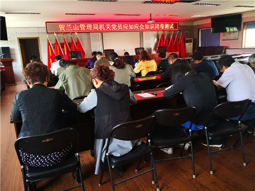5月17日上午,局党委在管理局四楼多功能厅组织了机关党员应知应会知识闭卷测试。测试题以宁夏区直机关工委应知应会50题为题库,分填空题、选择题、简答题三个部分,测试用时90分钟。