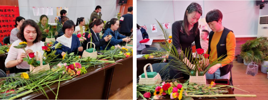 插花活动中,女职工们纷纷化身“巧手设计师”,结合各自手中的花材特点,修剪枝叶、搭配色彩、设计造型,一盆盆错落有致、寓意十足的插花作品随即展现在大家眼前,令人赏心悦目。