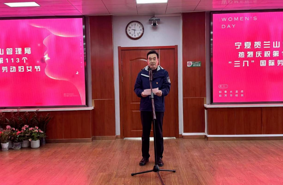 局党委书记蒋操向全体女职工致以节日问候和美好祝愿,同时希望全体女职工能够坚定理想信念,练就过硬本领,立足岗位,努力工作,敢于奋斗、勇于奉献,在贺兰山生态保护事业上取得新突破、新进展,贡献巾帼力量、再展巾帼风采。