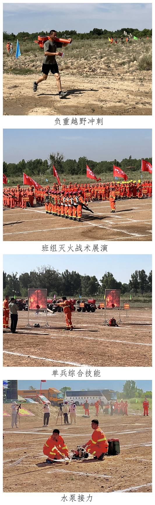 “呈战斗队形,散开!”随着开幕式上贺兰山管理局专业扑火队班组灭火战术展演科目演示完毕,自治区林业和草原局第一届防灭火大比武竞赛项目正式拉开帷幕。