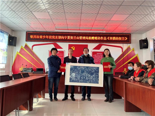 活动地点在月牙湖乡滨河家园二村(宁夏林业与草原局驻村帮扶点),宁夏贺兰山管理局机关党支部、银川市团委青少年宫党支部与月牙湖滨河家园二村党支部召开了座谈会,重温了入党誓词,开展了《奔腾吧 贺兰山》蜡染作品捐赠仪式。会后,全体党员参观了月牙湖乡产业园展厅、经济果林提升改造项目、四村手工麻编坊、儿童之家等月牙湖乡重点民生工程,向贫困群众捐赠了日常生活用品。