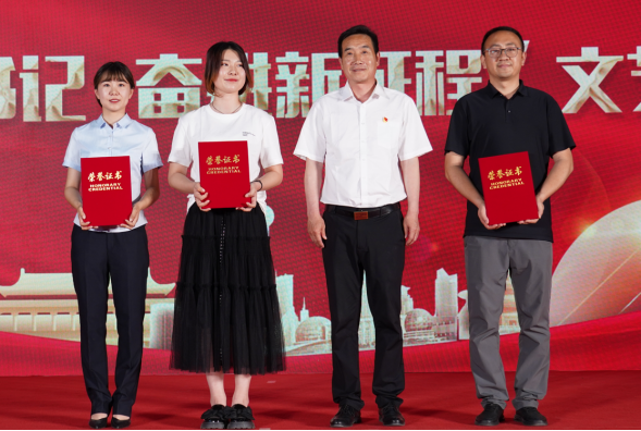 宁夏贺兰山管理局党委副书记、局长党玉龙代表宁夏贺兰山管理局致辞,局领导班子成员为“感恩总书记 奋进新征程”系列活动优秀团体、个人进行了颁奖。