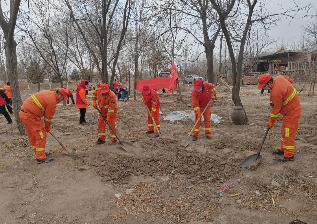 石嘴山管理站党支部联合沟口街道翠柳社区开展卫生整治。
