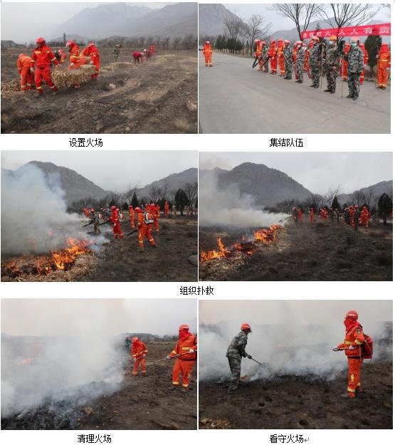 本次演练,设机具使用讲解知识、防火器具操作演示、和实战演练三个环节,对风力灭火机、打火把、灭火水枪、干粉灭火器、铁锹等扑火工具的使用方法进行现场讲解和演示;并组织管理站突击队与陵园管理单位,从设置火场、集结队伍、组织扑救、清理火场、看守火场五个方面进行实战演练。演练结束后双方联合制定了辖区《森林草原火灾应急处置预案》。