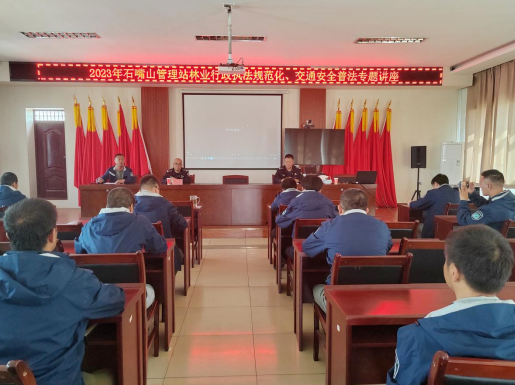 为认真贯彻落实贺兰山管理局“三大提升”工作,进一步增强广大干部职工交通安全意识和林业行政执法能力,5月15日上午,石嘴山管理站联合林政资源保护科、汝箕沟管理站、红果子管理站邀请石嘴山市公安局红果子交警大队、贺兰山森林公安分局民警到石嘴山管理站开展道路交通安全普法教育和林业行政规范化执法培训讲座,共40余人参加。