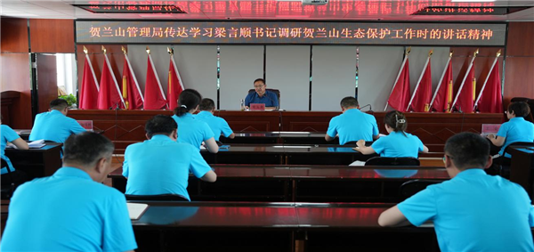 会上,党玉龙同志传达了梁言顺书记调研贺兰山生态保护工作时的讲话精神,表达了梁言顺书记对贺兰山生态保护工作的关切和期望。要求全局干部职工要按照梁言顺书记调研讲话要求,深入学习贯彻习近平生态文明思想,牢固树立绿水青山就是金山银山理念,担负起先行区建设重任,大力实施生态立区战略,切实承担起政治责任,坚决筑牢祖国西北生态安全屏障,更好造福宁夏人民。要牢记习近平总书记的嘱托,深怀对自然的敬畏之心,尊重自然、顺应自然、保护自然,千方百计保护好贺兰山的生态环境,为子孙后代留下绿水青山和“金山银山”。